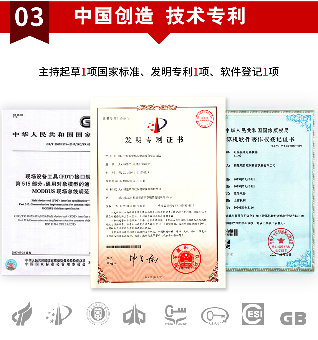 虹潤(rùn)公司是專(zhuān)業(yè)生產(chǎn)PLC控制器的國(guó)家專(zhuān)精特新“小巨人”企業(yè)。生產(chǎn)的簡(jiǎn)易PLC控制器,具有全隔離設(shè)計(jì),中文編程,專(zhuān)業(yè)邏輯控制與時(shí)間,梯形圖編程方式,遠(yuǎn)程RS485通訊監(jiān)測(cè)等特點(diǎn)。產(chǎn)品獲得智能化控制器、多通道可編程繼電器等2項(xiàng)國(guó)家發(fā)明專(zhuān)利;主持起草流程工業(yè)中電氣/儀表和控制系統(tǒng)的試車(chē)國(guó)家標(biāo)準(zhǔn),通信系統(tǒng)多通道數(shù)據(jù)采集控制終端規(guī)范軍用標(biāo)準(zhǔn),以及現(xiàn)場(chǎng)設(shè)備集成等5項(xiàng)智能制造國(guó)家標(biāo)準(zhǔn),參與國(guó)際5G標(biāo)準(zhǔn)制定,取得可編程繼電器等2項(xiàng)相關(guān)軟件著作權(quán)。產(chǎn)品廣泛應(yīng)用于工業(yè)自動(dòng)化設(shè)備、電氣自動(dòng)化系統(tǒng)、農(nóng)業(yè)灌溉、包裝機(jī)械、印刷機(jī)械、樓宇自控等諸多領(lǐng)域。