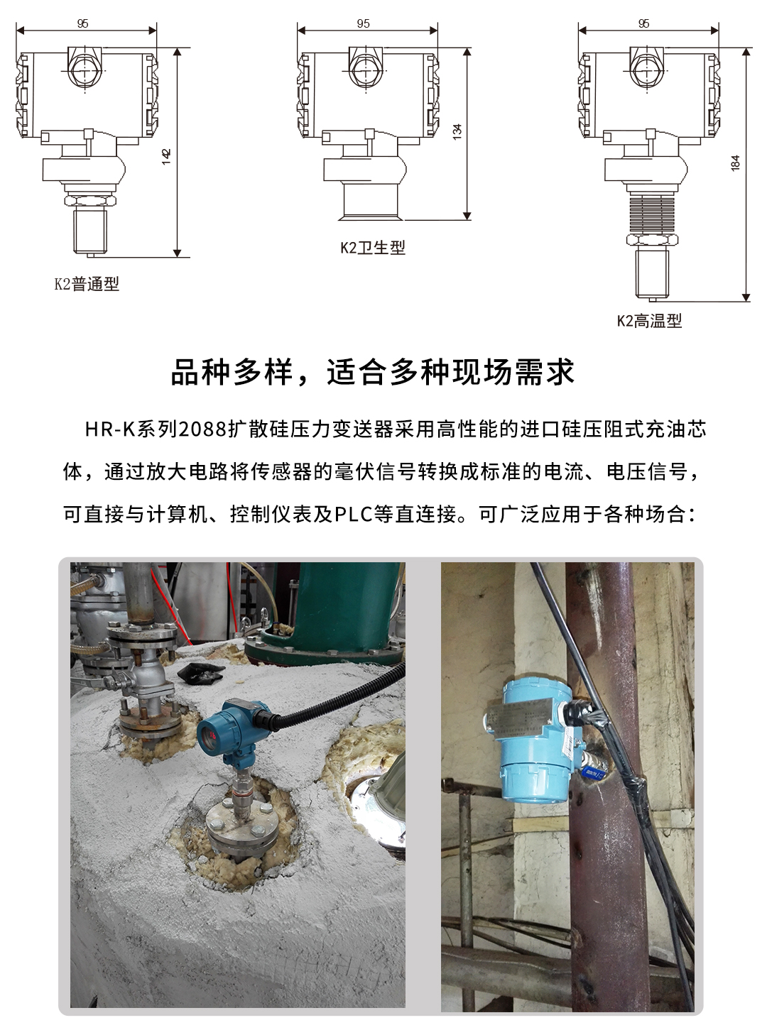 虹潤(rùn)公司是專業(yè)生產(chǎn)壓力變送器的國(guó)家專精特新“小巨人”企業(yè),生產(chǎn)的擴(kuò)散硅壓力變送器,具有精度高,穩(wěn)定性好,響應(yīng)速度快,高可靠性,抗過(guò)載和抗沖擊能力強(qiáng),安裝方便等特點(diǎn)。產(chǎn)品獲得一種數(shù)字顯示低功耗壓力表、一種信號(hào)發(fā)生器裝置等2項(xiàng)國(guó)家發(fā)明專利,主持起草工業(yè)過(guò)程控制系統(tǒng)用模擬輸入兩位或多位輸出儀表、工業(yè)過(guò)程測(cè)量和控制系統(tǒng)用壓力/差壓變送器等2項(xiàng)國(guó)家標(biāo)準(zhǔn),通信系統(tǒng)多通道數(shù)據(jù)采集控制終端規(guī)范軍用標(biāo)準(zhǔn),以及現(xiàn)場(chǎng)設(shè)備集成等5項(xiàng)智能制造國(guó)家標(biāo)準(zhǔn)。參與國(guó)際5G標(biāo)準(zhǔn)制定,取得數(shù)顯壓力表等2項(xiàng)相關(guān)軟件著作權(quán)。產(chǎn)品廣泛應(yīng)用于化工、食品、制藥、電力、設(shè)備配套、供暖、水處理、樓宇等行業(yè),需精準(zhǔn)測(cè)量流體壓力的現(xiàn)場(chǎng)。