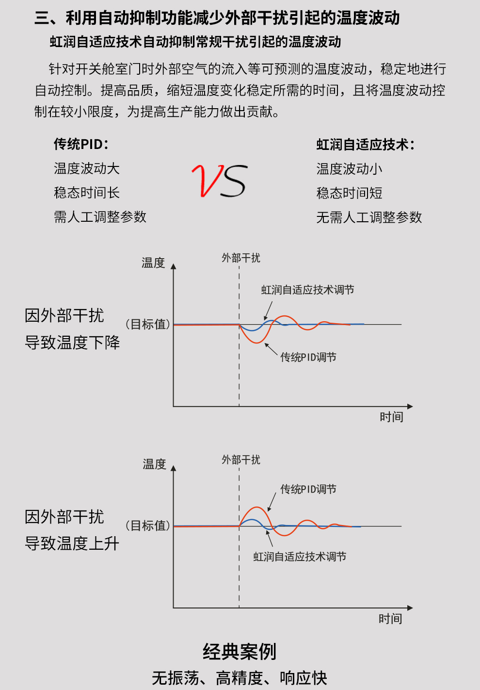 虹潤(rùn)公司是專業(yè)生產(chǎn)溫控器的國(guó)家專精特新“小巨人”企業(yè)。生產(chǎn)的傻瓜式智能溫控器,具有傻瓜式操作,真正人工智能算式,無(wú)需人工整定參數(shù),控制精度可達(dá)±0.1°C,高抗干擾等特點(diǎn)。產(chǎn)品獲得模糊PID控制儀及控制方法、人工智能調(diào)節(jié)器、智能化控制器、移相觸發(fā)控制器、閥門(mén)自動(dòng)手動(dòng)無(wú)擾動(dòng)操作控制方法及裝置等5項(xiàng)國(guó)家發(fā)明專利,主持起草工業(yè)過(guò)程控制系統(tǒng)用模擬輸入兩位或多位輸出儀表、物聯(lián)網(wǎng)智能溫度儀表通用技術(shù)條件、工業(yè)過(guò)程測(cè)量和控制系統(tǒng)用智能調(diào)節(jié)器等3項(xiàng)國(guó)家標(biāo)準(zhǔn),以及通信系統(tǒng)多通道數(shù)據(jù)采集控制終端規(guī)范軍用標(biāo)準(zhǔn),參與國(guó)際5G標(biāo)準(zhǔn)制定,取得傻瓜式模糊PID調(diào)節(jié)儀等3項(xiàng)相關(guān)軟件著作權(quán)。產(chǎn)品廣泛應(yīng)用于電力、石化,冶金、制藥、食品等幾乎所有工業(yè)現(xiàn)場(chǎng),實(shí)現(xiàn)精準(zhǔn)控溫,保障生產(chǎn)安全與質(zhì)量。