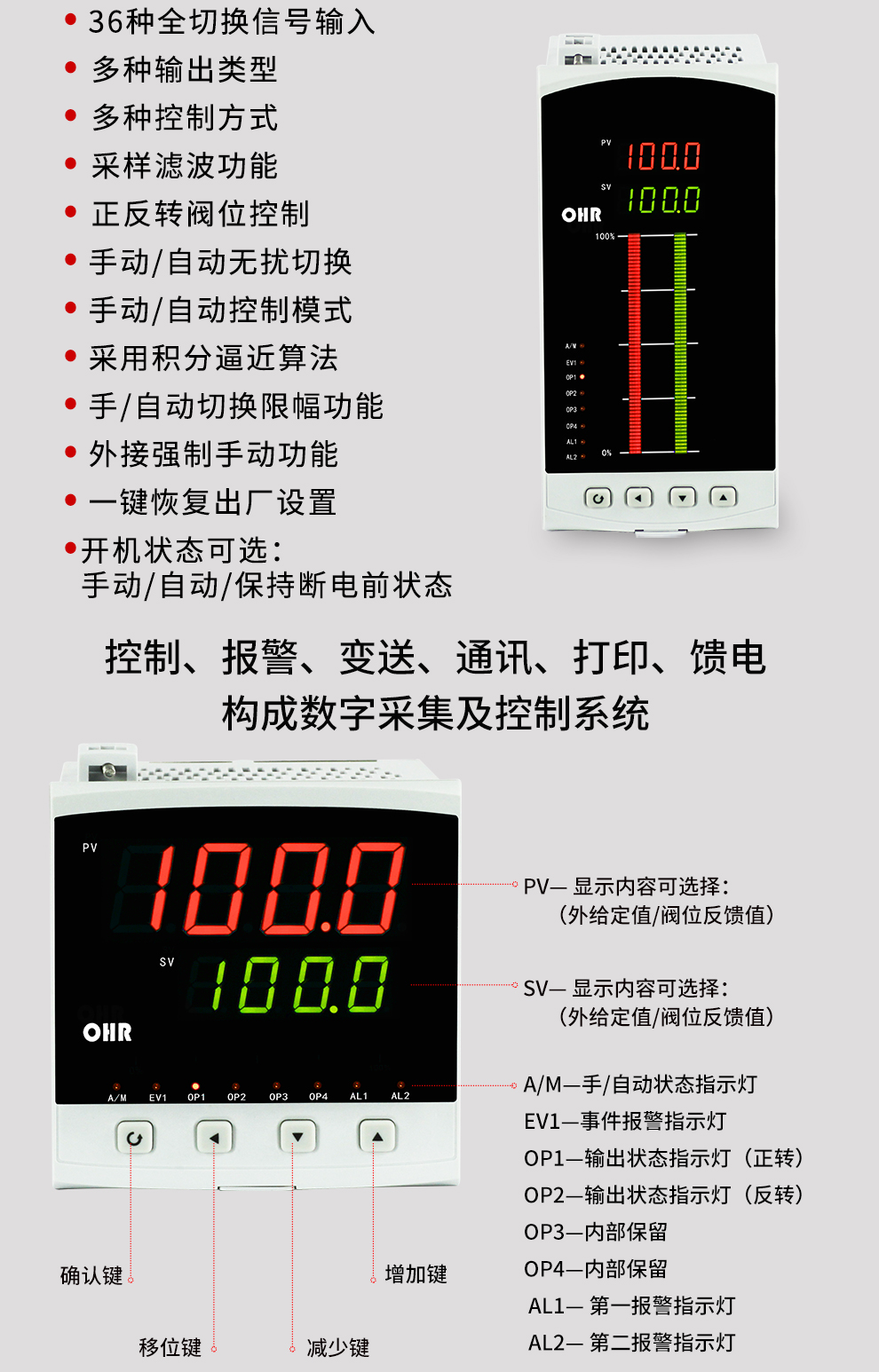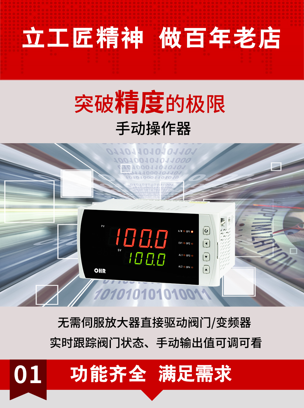 虹潤公司是專業(yè)生產(chǎn)智能手操器的國家專精特新“小巨人”企業(yè),生產(chǎn)的手動操作器,具有手自動無擾切換,直接調(diào)節(jié)閥門,多種輸出類型,外接強制手動功能,高抗干擾等特點。產(chǎn)品獲得閥門自動手動無擾動操作控制方法及裝置、模糊PID控制儀及控制方法、移相觸發(fā)控制器等3項國家標(biāo)準(zhǔn),主持起草工業(yè)過程控制系統(tǒng)用模擬輸入兩位或多位輸出儀表、流程工業(yè)中電氣/儀表和控制系統(tǒng)的試車等2項國家標(biāo)準(zhǔn),以及通信系統(tǒng)多通道數(shù)據(jù)采集控制終端規(guī)范軍用標(biāo)準(zhǔn),參與國際5G標(biāo)準(zhǔn)制定,取得手動操作器等3項相關(guān)軟件著作權(quán)。產(chǎn)品廣泛應(yīng)用于電力、石化、冶金、化工、造紙、食品、輕工、制藥、熱處理、水處理、機(jī)械配套等各種工業(yè)現(xiàn)場。