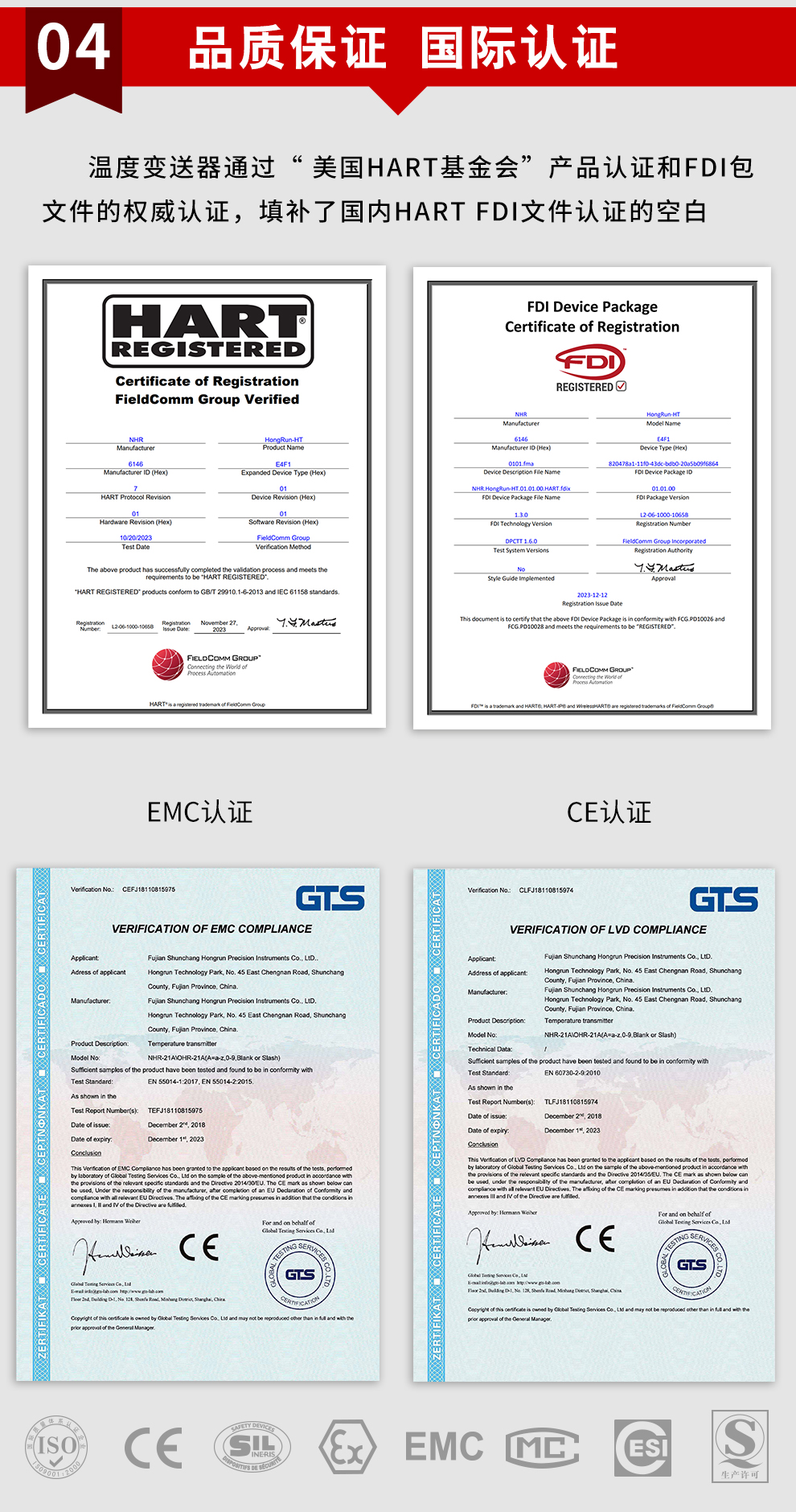 虹潤(rùn)公司是專業(yè)生產(chǎn)溫度變送器的國(guó)家專精特新“小巨人”企業(yè)。生產(chǎn)的現(xiàn)場(chǎng)顯示隔離溫度變送器,具有可修改輸入信號(hào)類型,測(cè)量精度高,穩(wěn)定性好,帶HART或RS485通訊計(jì)等特點(diǎn)。該產(chǎn)品不僅通過德國(guó)萊茵 CE 認(rèn)證與 SIL 功能安全認(rèn)證,還獲得具備減震抗干擾能力的溫度變送器、信號(hào)隔離器、一種二端子模塊、無源信號(hào)隔離器等3項(xiàng)國(guó)家發(fā)明專利。主持起草物聯(lián)網(wǎng)智能溫度儀表、現(xiàn)場(chǎng)設(shè)備工具(FDT)接口規(guī)范、工業(yè)過程測(cè)量和控制系統(tǒng)用溫度變送器等3項(xiàng)國(guó)家標(biāo)準(zhǔn),以及通信系統(tǒng)多通道數(shù)據(jù)采集控制終端規(guī)范軍用標(biāo)準(zhǔn)。參與國(guó)際5G標(biāo)準(zhǔn)制定,取得高精度溫度變送器等3項(xiàng)相關(guān)軟件著作權(quán)。產(chǎn)品廣泛應(yīng)用于石油、化工、電力、冶金、制藥、食品、水處理等各種工業(yè)領(lǐng)域。