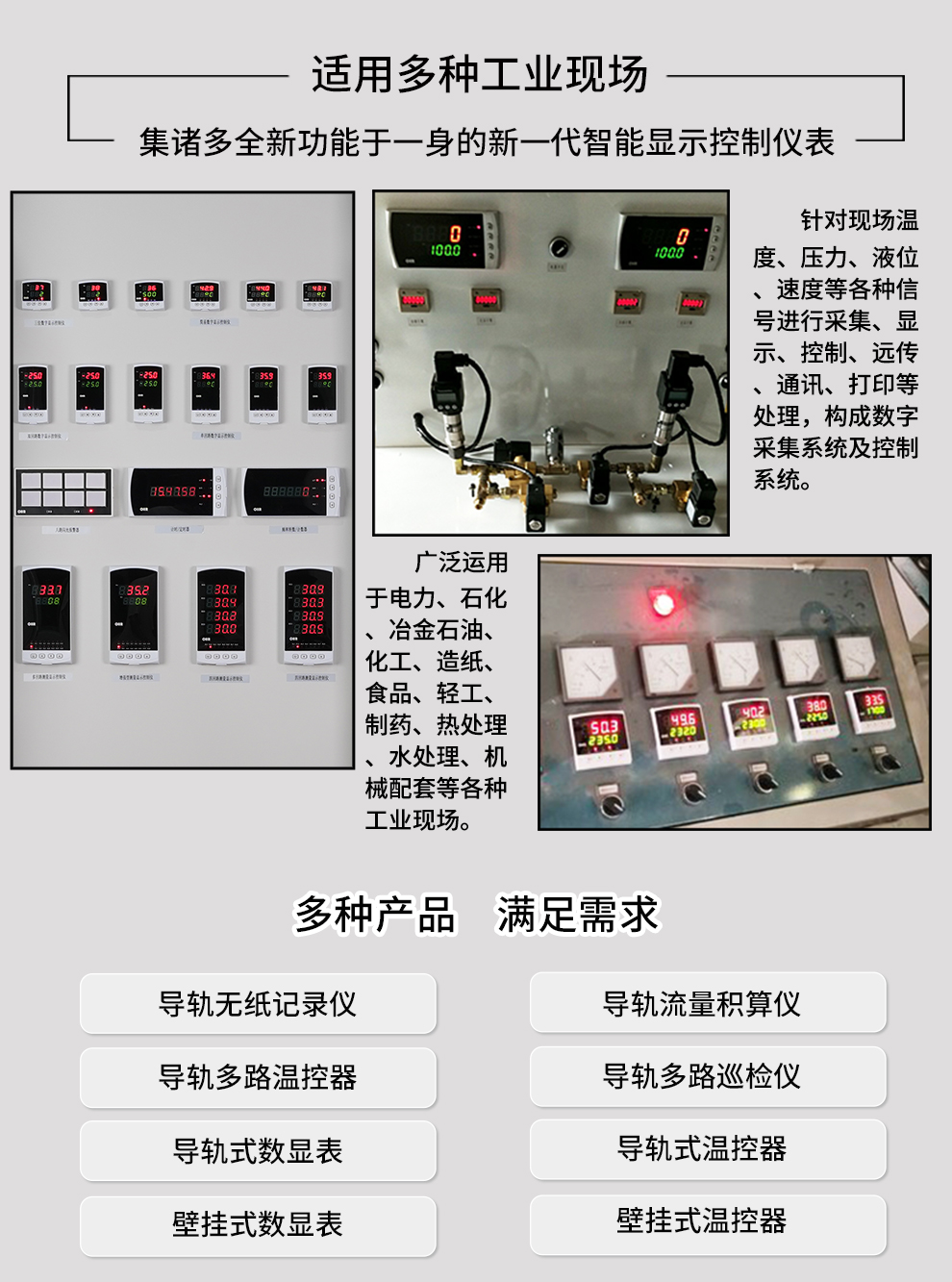虹潤公司是專業(yè)生產(chǎn)多路溫度巡檢儀的國家專精特新“小巨人”企業(yè)。生產(chǎn)的導(dǎo)軌多路巡檢儀,具有八回路巡檢采集,全切換信號輸入,高抗電磁干擾,全隔離設(shè)計,分別報警/分別變送輸出等特點。產(chǎn)品獲得巡回檢測顯示方法及裝置以及工業(yè)模塊的導(dǎo)軌式安裝結(jié)構(gòu)等2項國家發(fā)明專利,主持起草工業(yè)過程控制系統(tǒng)用模擬輸入兩位或多位輸出儀表、物聯(lián)網(wǎng)智能溫度儀表通用技術(shù)條件等2項國家標(biāo)準(zhǔn),以及通信系統(tǒng)多通道數(shù)據(jù)采集控制終端規(guī)范軍用標(biāo)準(zhǔn),參與國際5G標(biāo)準(zhǔn)制定,取得巡回檢測控制儀等3項相關(guān)軟件著作權(quán)。產(chǎn)品廣泛應(yīng)用于石化、冶金、電力、食品、制藥、水處理、實驗室等諸多領(lǐng)域。