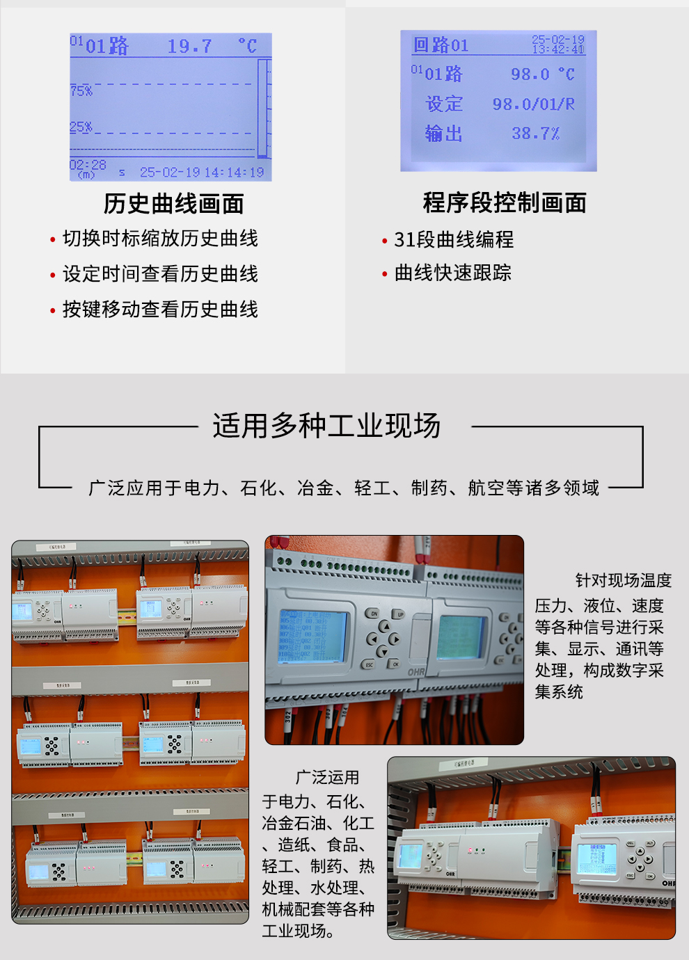 虹潤公司是專業(yè)生產(chǎn)溫控器的國家專精特新“小巨人”企業(yè)。生產(chǎn)的溫度控制器,具有4路或8路PID控制,真正人工智能算式,無需人工整定參數(shù),控制精度達(dá)士0.1°C,數(shù)據(jù)記錄與轉(zhuǎn)存等特點(diǎn)。產(chǎn)品獲得智能化控制器、人工智能調(diào)節(jié)器及調(diào)節(jié)方法、模糊PID控制儀及控制方法、一種平板無紙記錄儀、巡回檢測顯示方法及裝置等5項(xiàng)國家發(fā)明專利,主持起草物聯(lián)網(wǎng)智能記錄儀表、物聯(lián)網(wǎng)智能溫度儀表、工業(yè)過程測量和控制系統(tǒng)用智能調(diào)節(jié)器等3項(xiàng)國家標(biāo)準(zhǔn),參與國際5G標(biāo)準(zhǔn)制定,取得液晶溫控器儀表等3項(xiàng)相關(guān)軟件著作權(quán)。產(chǎn)品廣泛應(yīng)用于電石化、工業(yè)爐、試驗(yàn)設(shè)備、注塑機(jī)械、包裝機(jī)械等需要對現(xiàn)場溫度進(jìn)行監(jiān)測控制的行業(yè)。