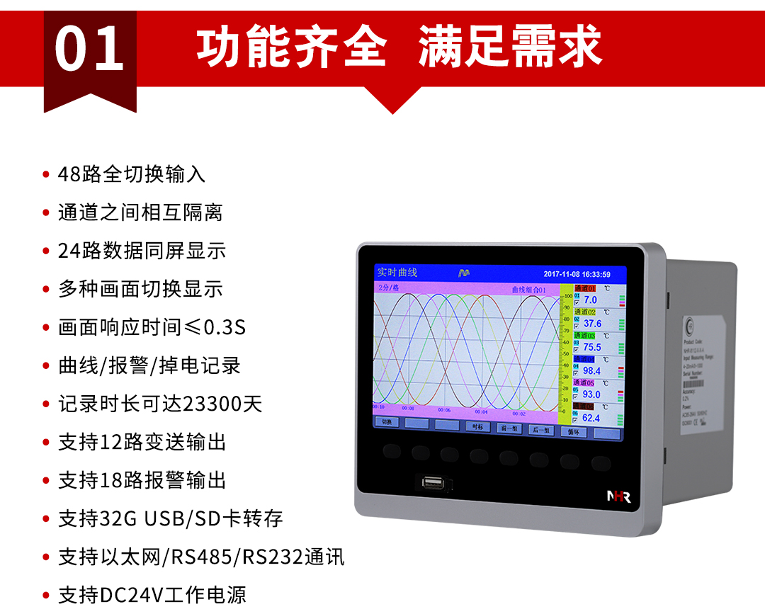NHR-8700系列多路彩色數(shù)據(jù)采集無(wú)紙記錄儀