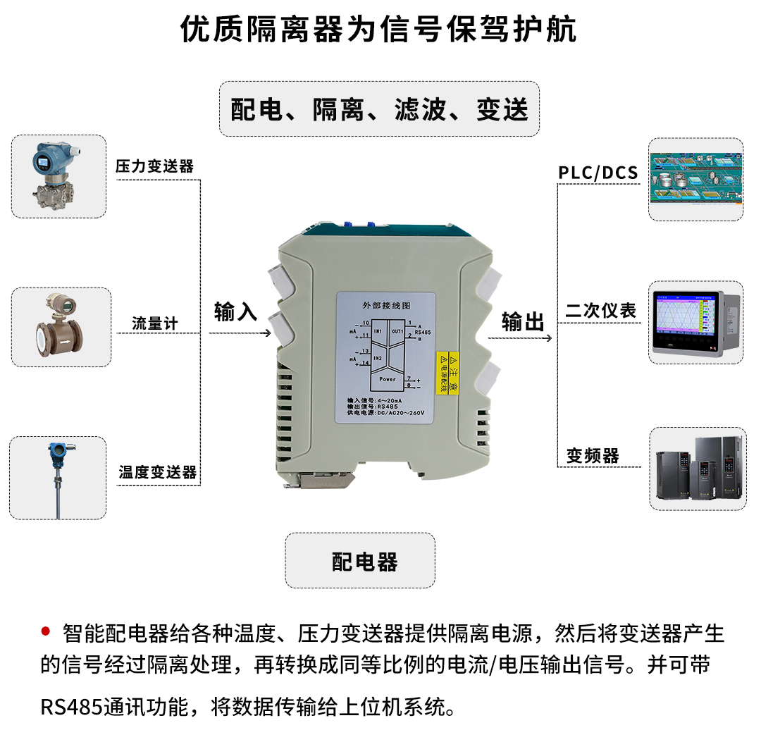 虹潤(rùn)公司是專(zhuān)業(yè)生產(chǎn)隔離器的國(guó)家專(zhuān)精特新“小巨人”企業(yè)。生產(chǎn)的導(dǎo)軌式智能配電器,具有配接二三線制變送器,輸入輸出電源三隔離,響應(yīng)時(shí)間快,傳輸精度0.1%FS,支持485通訊輸出等特點(diǎn)。產(chǎn)品獲得信號(hào)隔離器、一種二端子模塊、無(wú)源信號(hào)隔離器等3項(xiàng)國(guó)家發(fā)明專(zhuān)利,主持起草現(xiàn)場(chǎng)設(shè)備工具(FDT)接口規(guī)范、工業(yè)過(guò)程測(cè)量和控制系統(tǒng)用隔離式安全柵、工業(yè)過(guò)程測(cè)量和控制系統(tǒng)用配電器等3項(xiàng)國(guó)家標(biāo)準(zhǔn),以及通信系統(tǒng)多通道數(shù)據(jù)采集控制終端規(guī)范軍用標(biāo)準(zhǔn)。參與國(guó)際5G標(biāo)準(zhǔn)制定。,取得智能隔離器等2項(xiàng)相關(guān)軟件著作權(quán)。產(chǎn)品廣泛應(yīng)用于石油、化工,冶金、電力、食品、光伏能源、污水處理等需要電隔離的工業(yè)自動(dòng)化控制系統(tǒng)。