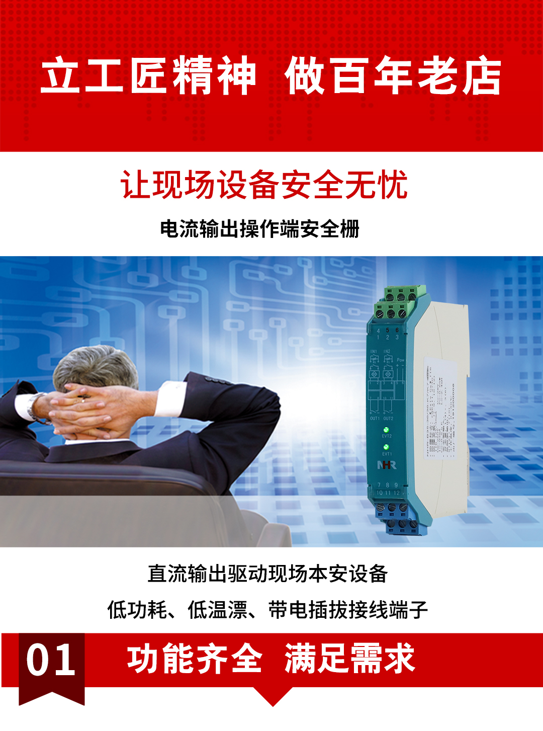 虹潤(rùn)公司是專業(yè)生產(chǎn)隔離器的國(guó)家專精特新“小巨人”企業(yè)。生產(chǎn)的電壓/電流輸出操作端隔離柵涵蓋信號(hào)電壓輸入、電流輸入、開關(guān)量輸入等多種產(chǎn)品類型。產(chǎn)品獲得具備減震抗干擾能力的溫度變送器、信號(hào)隔離器、一種二端子模塊、無源信號(hào)隔離器等4項(xiàng)國(guó)家發(fā)明專利,主持起草物聯(lián)網(wǎng)智能溫度儀表、現(xiàn)場(chǎng)設(shè)備工具(FDT)接口規(guī)范、工業(yè)過程測(cè)量和控制系統(tǒng)用溫度變送器等3項(xiàng)國(guó)家標(biāo)準(zhǔn),以及通信系統(tǒng)多通道數(shù)據(jù)采集控制終端規(guī)范軍用標(biāo)準(zhǔn)。參與國(guó)際5G標(biāo)準(zhǔn)制定,取得智能隔離式安全柵等4項(xiàng)相關(guān)軟件著作權(quán)。產(chǎn)品廣泛應(yīng)用于石油、電力、化工,冶金、智能制造、污水處理等諸多行業(yè)。