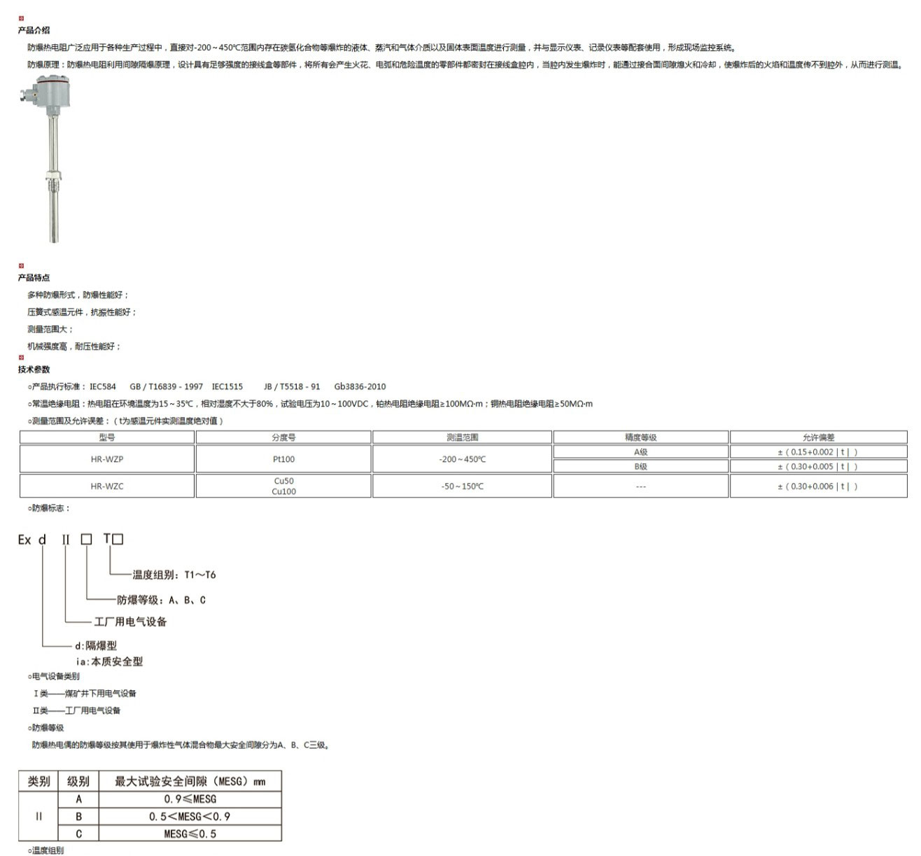 防爆熱電阻廣泛應(yīng)用于各種生產(chǎn)過程中,直接對-200~450℃范圍內(nèi)存在碳?xì)浠衔锏缺ǖ囊后w、蒸汽和氣體介質(zhì)以及固體表面溫度進(jìn)行測量,并與顯示儀表、記錄儀表等配套使用,形成現(xiàn)場監(jiān)控系統(tǒng)。