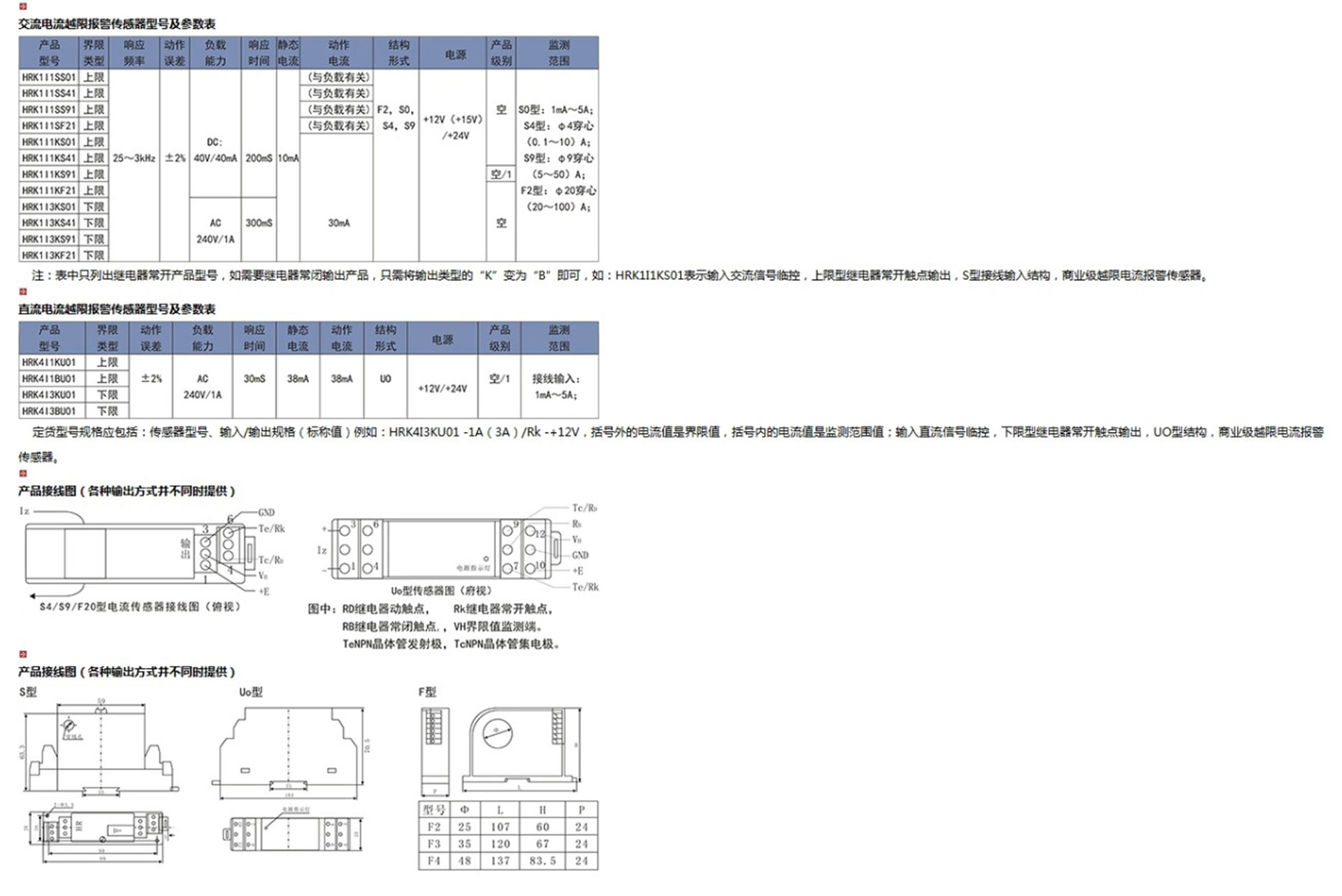 電流越限報(bào)警傳感器以HR系列電量隔離傳感器為基礎(chǔ),增配比較器電路、基準(zhǔn)電壓設(shè)定電路、輸出驅(qū)動電路組成,用來隔離監(jiān)測主回路中的交流或直流電流,當(dāng)被監(jiān)測的電量超過預(yù)先設(shè)定的上限值,或低于預(yù)先設(shè)定的下限值時(shí),給出開關(guān)量控制信號。
