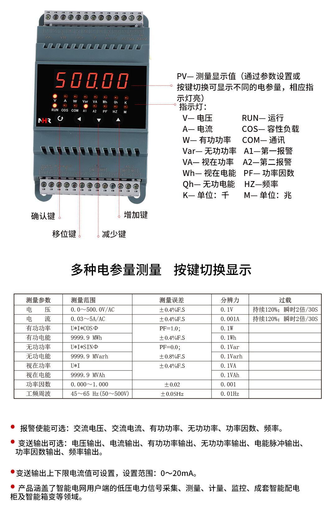 虹潤(rùn)公司是專(zhuān)業(yè)生產(chǎn)電流傳感器的國(guó)家專(zhuān)精特新“小巨人”企業(yè)。生產(chǎn)的單相電量變送器,具有多種電參數(shù)測(cè)量,有功無(wú)功電能累積,高抗干擾,導(dǎo)軌壁掛共用, RS485/RS232通訊等特點(diǎn)。產(chǎn)品獲得基于一種交流信號(hào)變送器、交直流信號(hào)轉(zhuǎn)換電路、基于DCS技術(shù)的盤(pán)裝式三相電量表等3項(xiàng)國(guó)家發(fā)明專(zhuān)利,主持起草工業(yè)過(guò)程控制系統(tǒng)用模擬輸入兩位或多位輸出儀表國(guó)家標(biāo)準(zhǔn),直流漏電流傳感器規(guī)范、通信系統(tǒng)多通道數(shù)據(jù)采集控制終端規(guī)范等2項(xiàng)軍用標(biāo)準(zhǔn),以及現(xiàn)場(chǎng)設(shè)備集成等5項(xiàng)智能制造國(guó)家標(biāo)準(zhǔn),參與國(guó)際5G標(biāo)準(zhǔn)制定,取得單相電量?jī)x表等2項(xiàng)相關(guān)軟件著作權(quán)。產(chǎn)品廣泛應(yīng)用于電力、冶金、化工、水泥、造紙、新能源、基礎(chǔ)設(shè)施等用電密集行業(yè)。